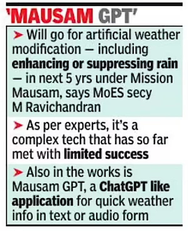 - Challenges: Projects have faced challenges such as a lack of suitable clouds to seed, debates over efficacy, and the absence of a national policy framework for weather modification.