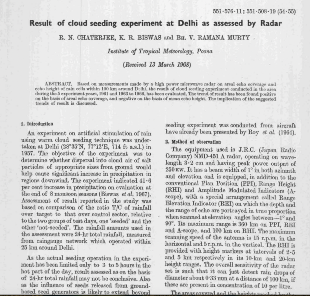 It’s crucial to acknowledge that, like many pioneering scientific endeavors, the Delhi experiment faced its share of limitations and methodological criticisms. Leading atmospheric scientists of the time, such as Mason (1971), Warner (1973), and Cotton (1982), discussed concerns including:
