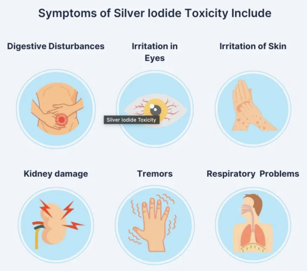 Symptoms of silver iodide toxicity can range from mild to severe, including skin irritation, gastrointestinal upset, and respiratory problems. If a person has been exposed to silver iodide, it is important to seek medical attention immediately.