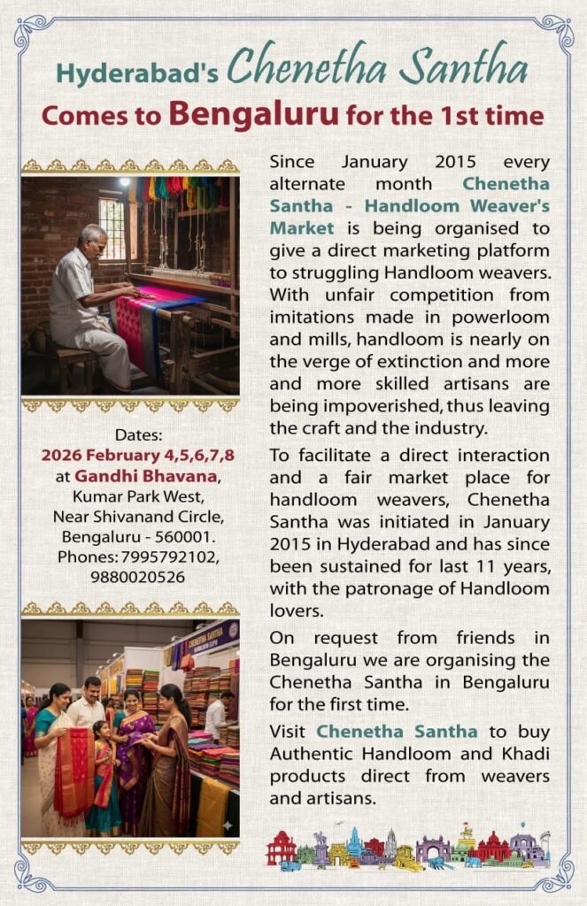 If you are in Bengaluru (or future host cities), visit Chenetha Santha, engage with the weavers, and invest in handloom—not just as a product, but as a pledge to protect India’s craft heritage.